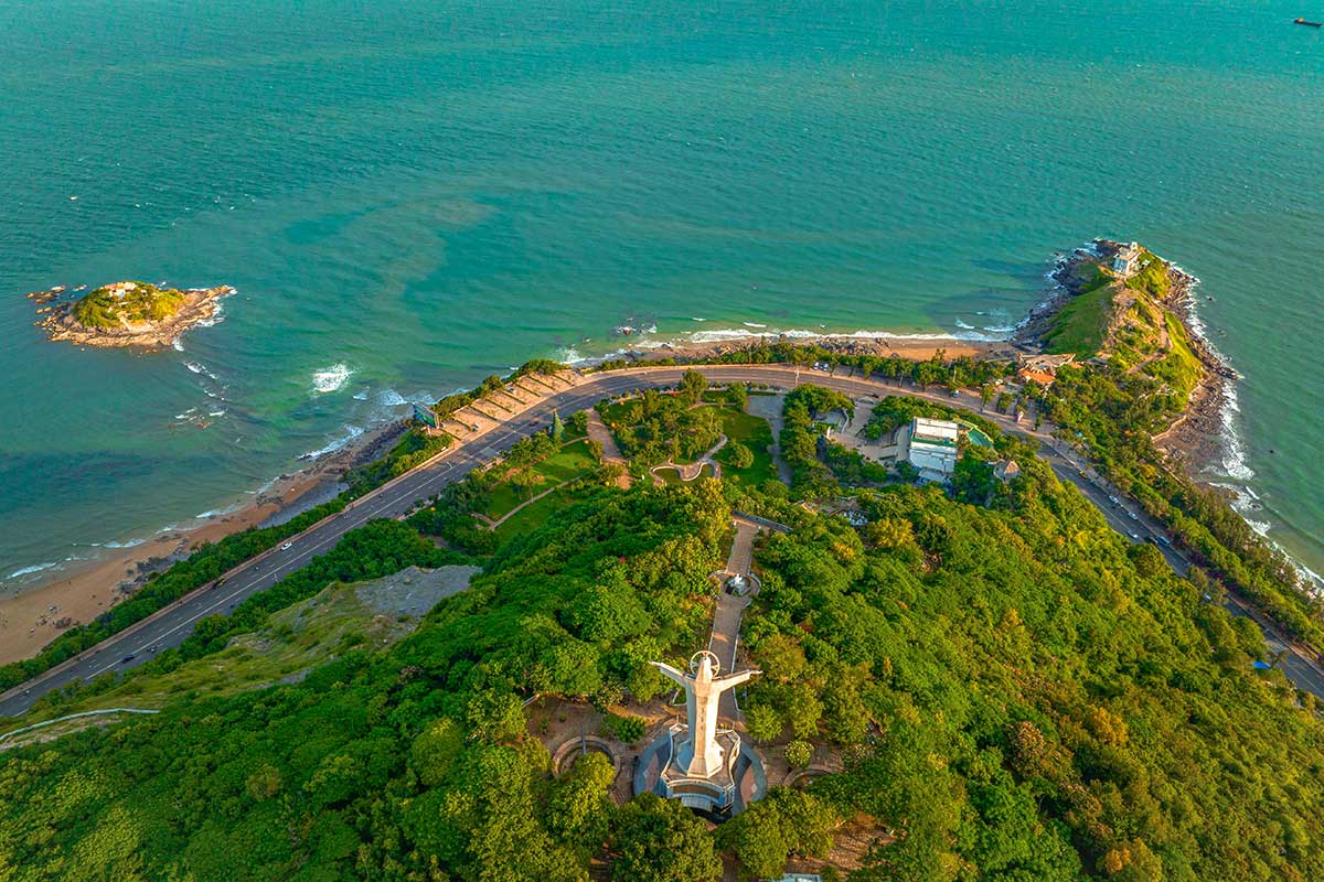 The island lies right below Vung Tau’s most famous landmark, the Jesus Christ Statue on Small Mountain. From the statue’s shoulders or even from its base area, you get panoramic views over the sea and a perfect angle of Hon Ba Island.