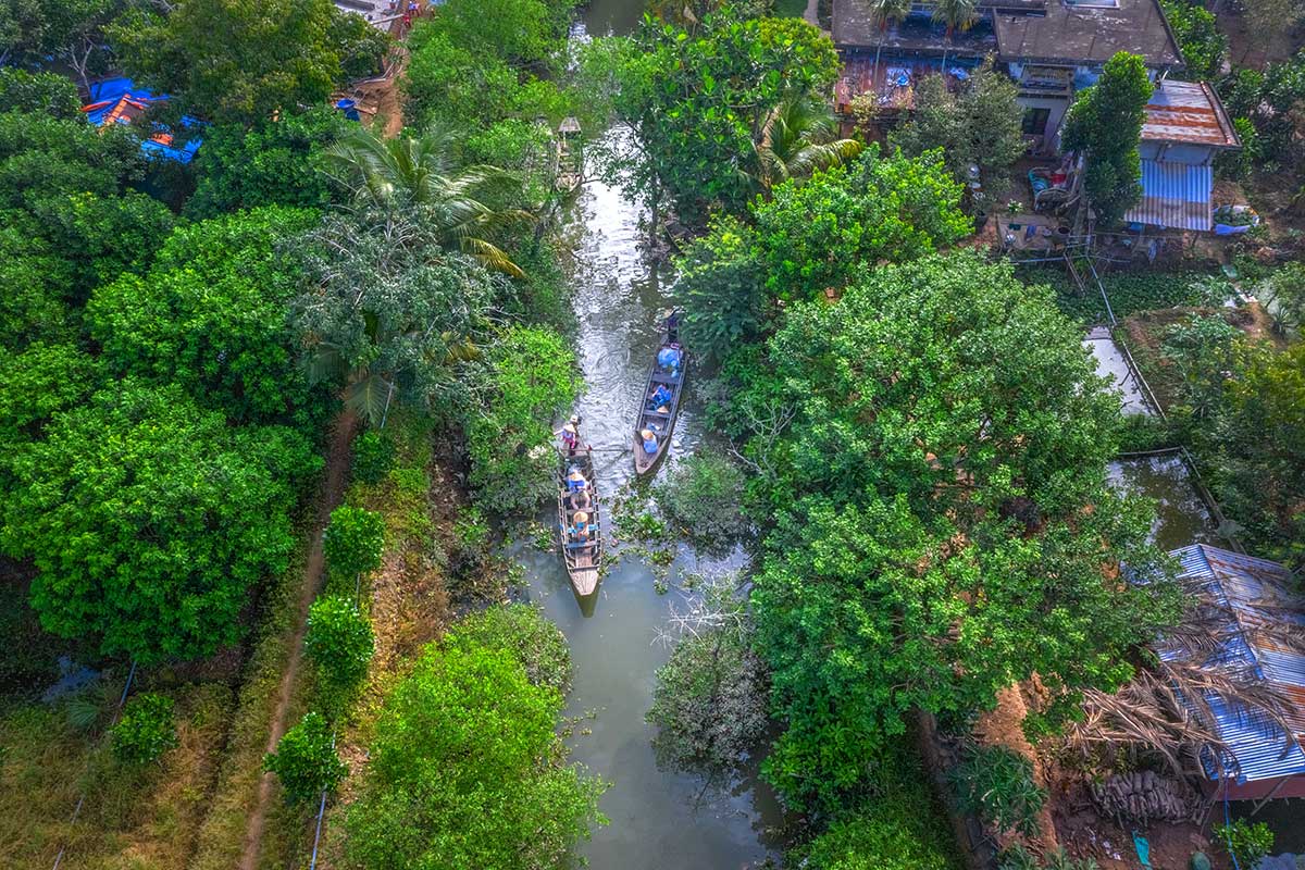 Rowing sampans are used for the narrowest canals, often surrounded by dense vegetation. These small boats provide a peaceful and intimate way to see the delta. Usually, a sampan ride is included as part of a larger day tour.