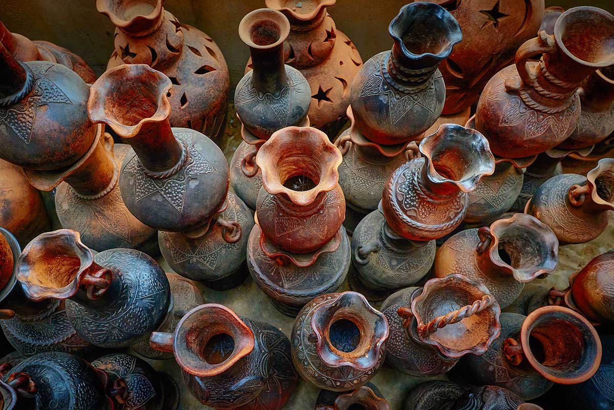 Shops around the village sell a wide range of products, from everyday household items like jars and bowls to decorative pieces such as vases, lamps, and statues.