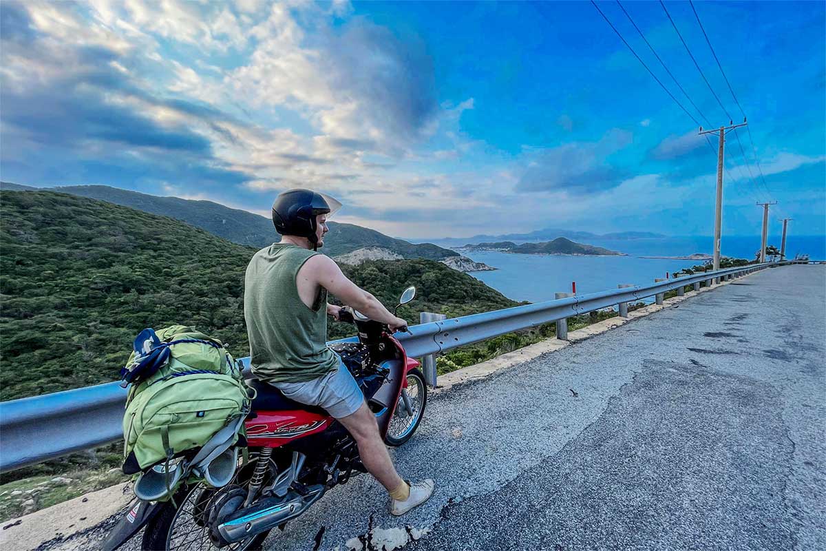 Riding a motorbike is the most flexible way to get to Vinh Hy. It’s cheap and allows plenty of photo stops along the scenic road, but comes with the usual risks. An international driving permit is officially required in Vietnam, and the route has sharp bends, strong sun, and wind. Fuel is available in Phan Rang before starting, and parking is possible in the village near the harbor.