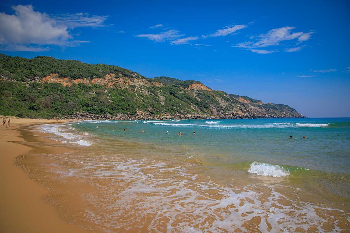 Bai Mon Beach lies about 30 km southeast of Tuy Hoa, the main city in Phu Yen Province. It sits right below Mui Dien Lighthouse, at the edge of a dramatic coastal headland. The beach can also be reached from Nha Trang, which is further away but connected by the scenic Deo Ca Pass – a winding coastal road with great views.