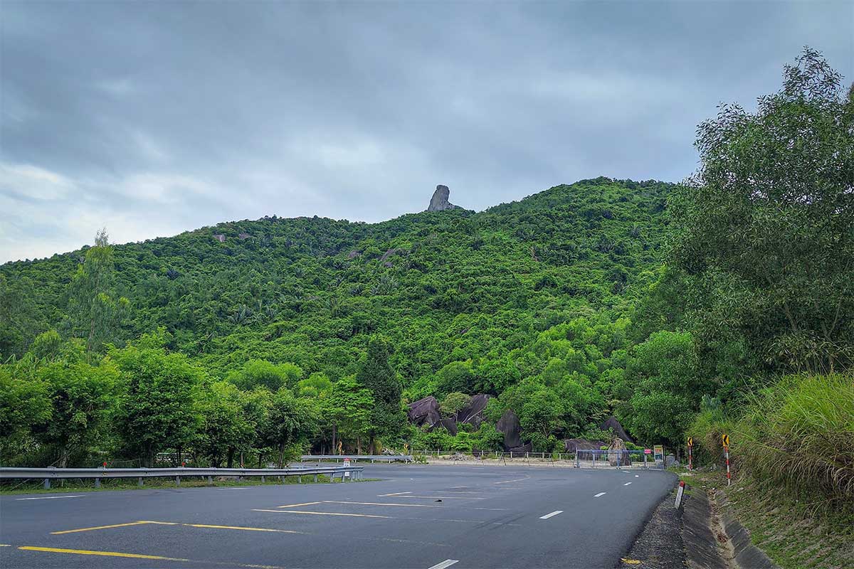 At the provincial border between Phu Yen and Khanh Hoa, the road cuts through a massive granite outcrop known as Cua Da Den, or Black Rock Curve. The overhanging boulder above the highway is a striking feature and makes it clear why carving a road through this terrain was such a challenge.