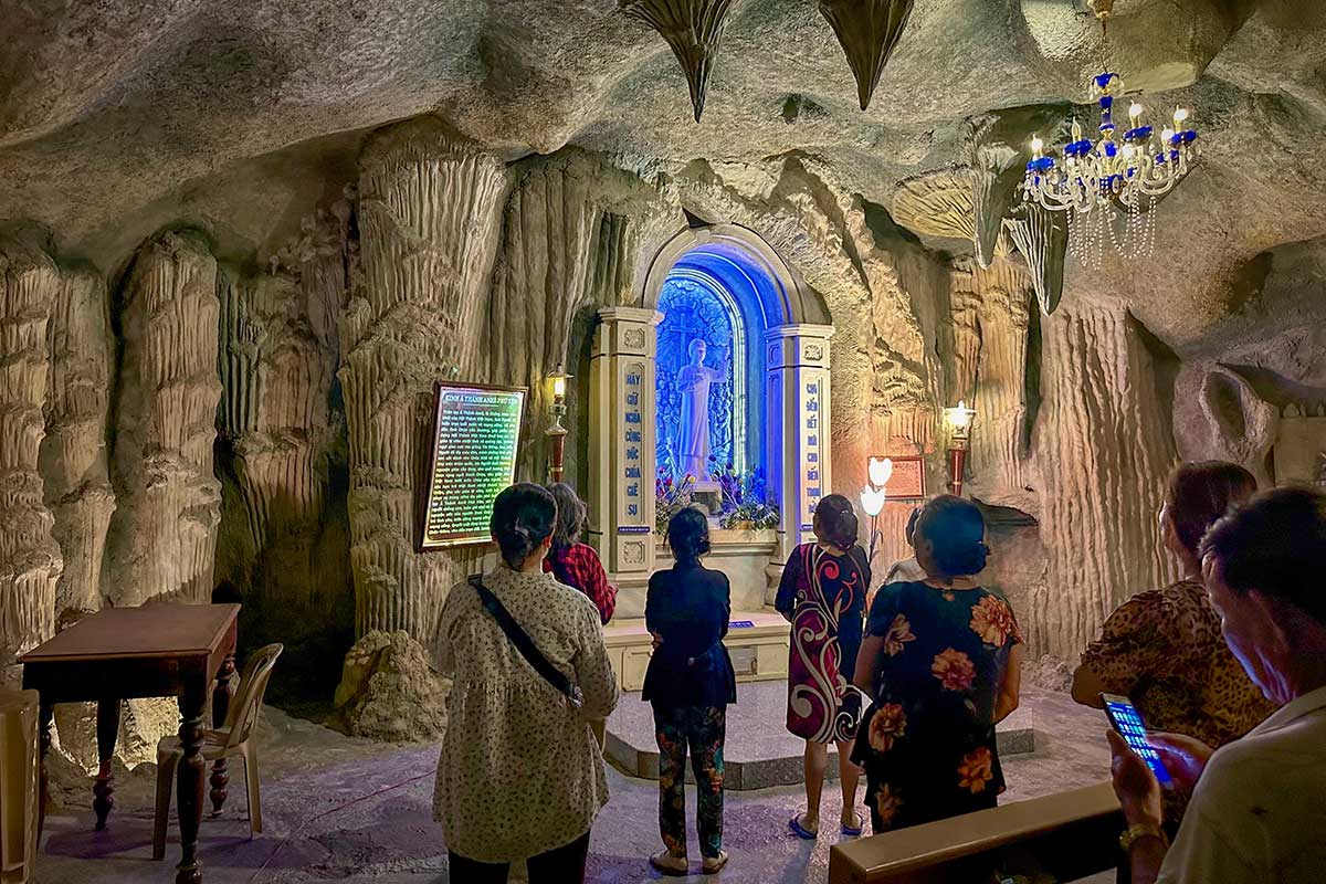 Along the passageways, you’ll see displays about Saint Andrew of Phu Yen and early missionary history, giving the grotto both a devotional and museum-like feel. It’s modest but atmospheric, and often surprises visitors who expect only the Gothic church above.