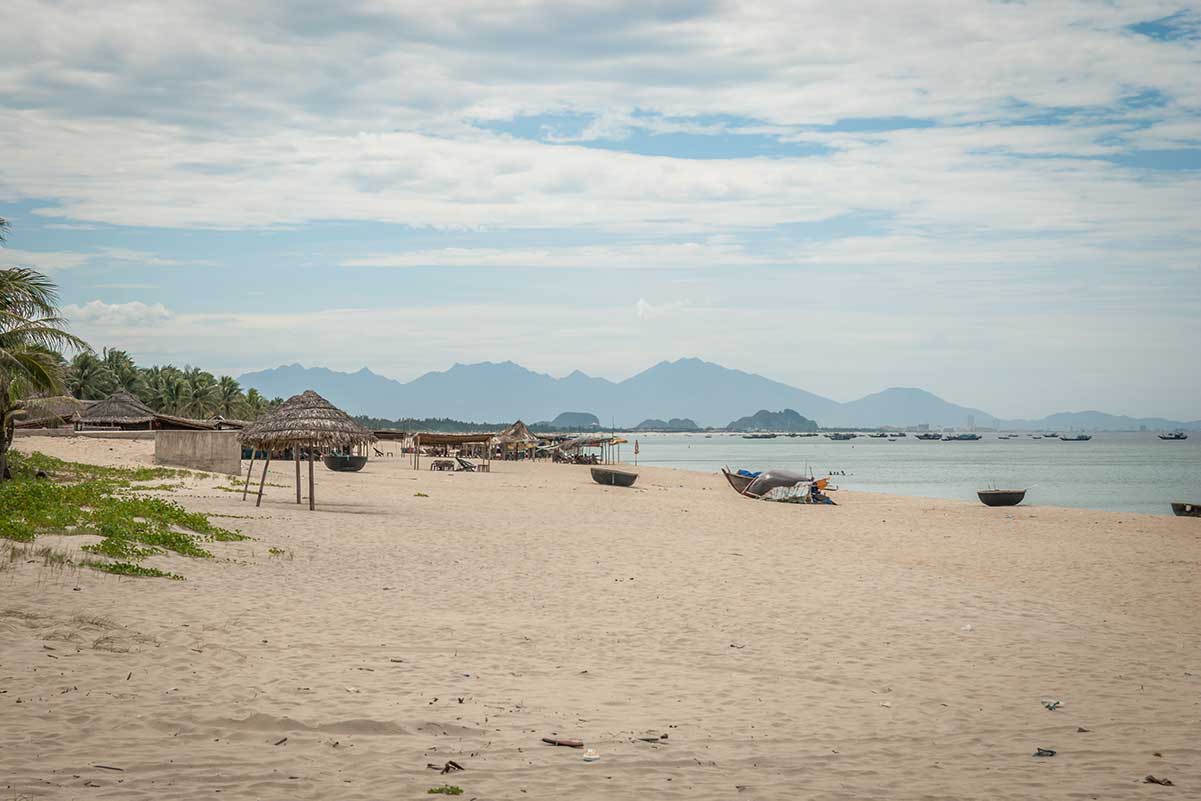 The beach feels wild and windswept, with very little infrastructure beyond a few seafood stalls and basic eateries near the entrance. While it’s not ideal for a lazy beach day, it’s one of the best beaches near Hoi An for photography, sunrise views, and glimpsing everyday fishing culture.