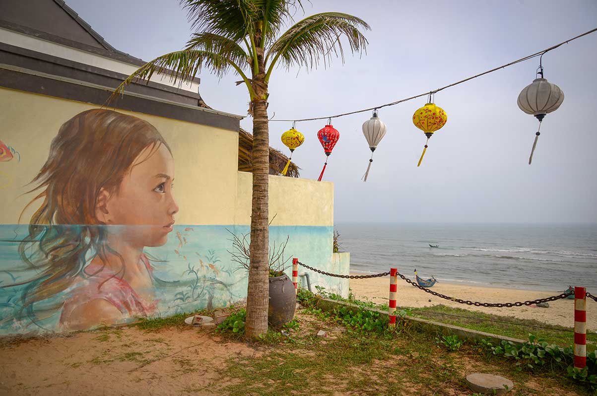 Located near Tam Ky, about an hour south of Hoi An, Tam Thanh Beach is best known for its nearby mural village — a fishing community transformed by colorful street art. Beyond the paintings lies a long, peaceful stretch of soft sand where you can walk for ages without seeing another tourist. The sea is usually clear but can get breezy and wavy, giving it a wild, coastal charm.