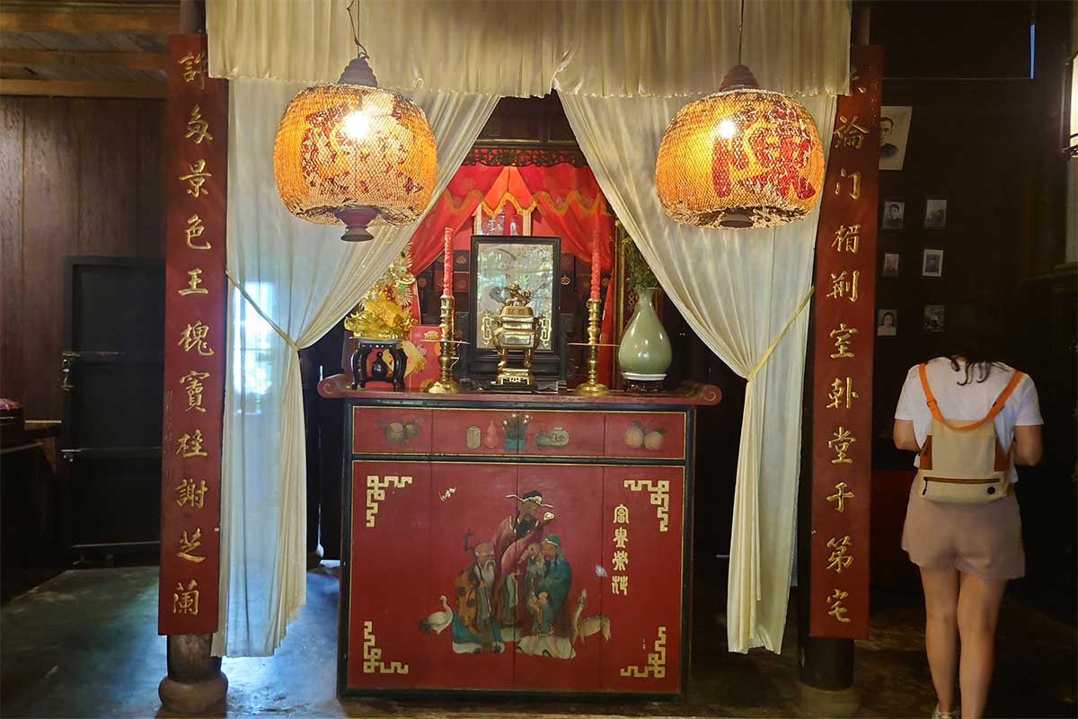 The layout is modest, with three small altars and an open courtyard. Instead of ornate dragons or gold-leaf details, the charm here lies in the simplicity: faded wood, hand-painted walls, and soft light filtering through the roof. Local worshippers still stop by to light incense or leave offerings, so it feels active without being touristy.