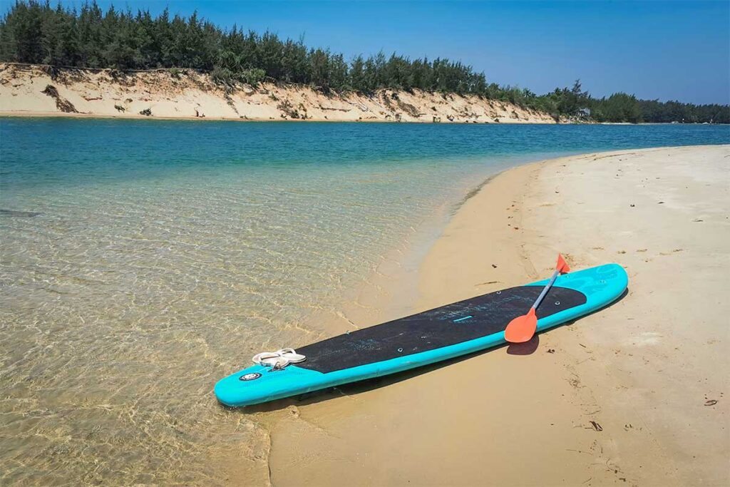 The calm river surrounding the island is perfect for kayaking or stand-up paddling. You’ll paddle past mangroves, sandbars, and local boats heading to sea. The water stays gentle except where the river meets the open ocean, where waves can pick up.