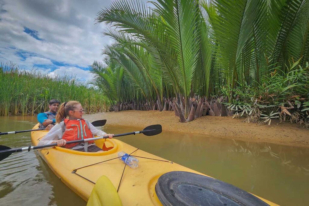 Discover a different side of Hoi An with this peaceful Hoi An kayaking tour. Paddle through the Ancient Town during golden hour, when the riverside houses glow in the late afternoon sun. Glide further along to the tranquil Cam Thanh mangrove forest, where nipa palms line the waterways and local life unfolds along the riverbanks. With small groups, friendly guides, and a relaxed pace, this short adventure is a perfect mix of scenery, culture, and calm exploration.