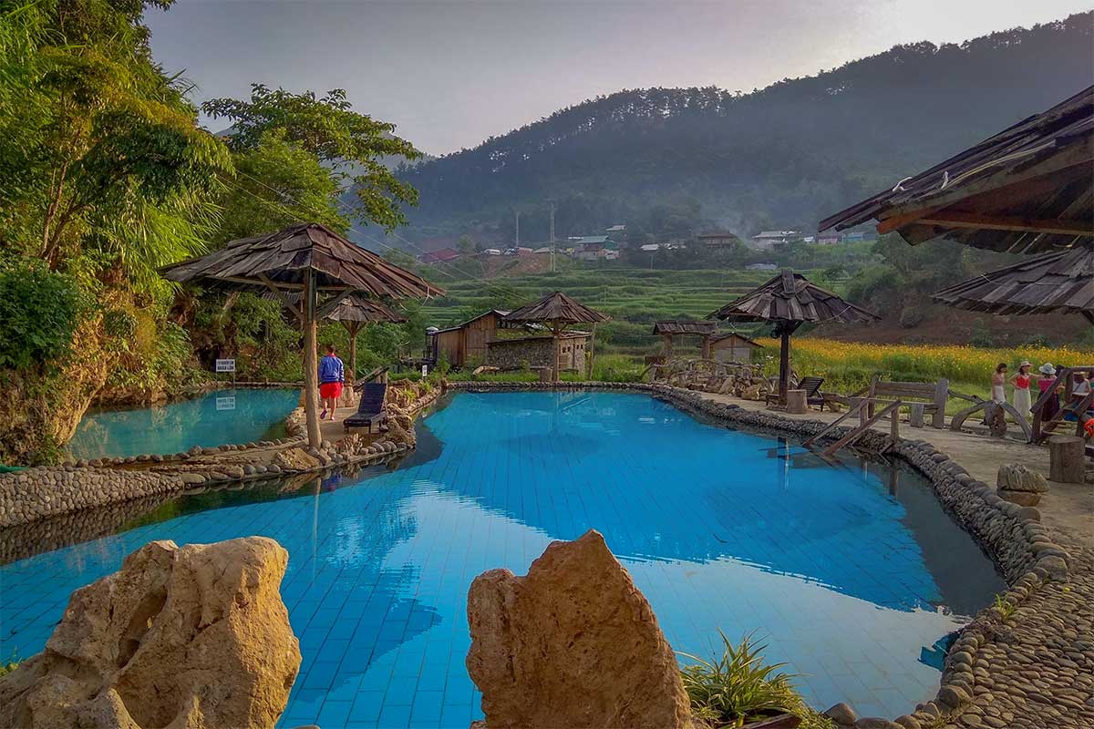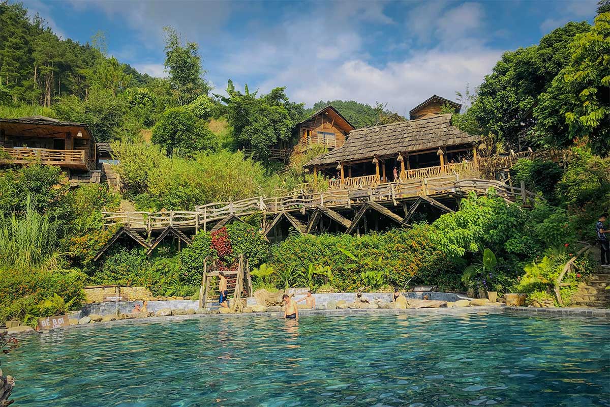 • Relax at the Tram Tau hot spring and enjoy a peaceful soak with mountain views